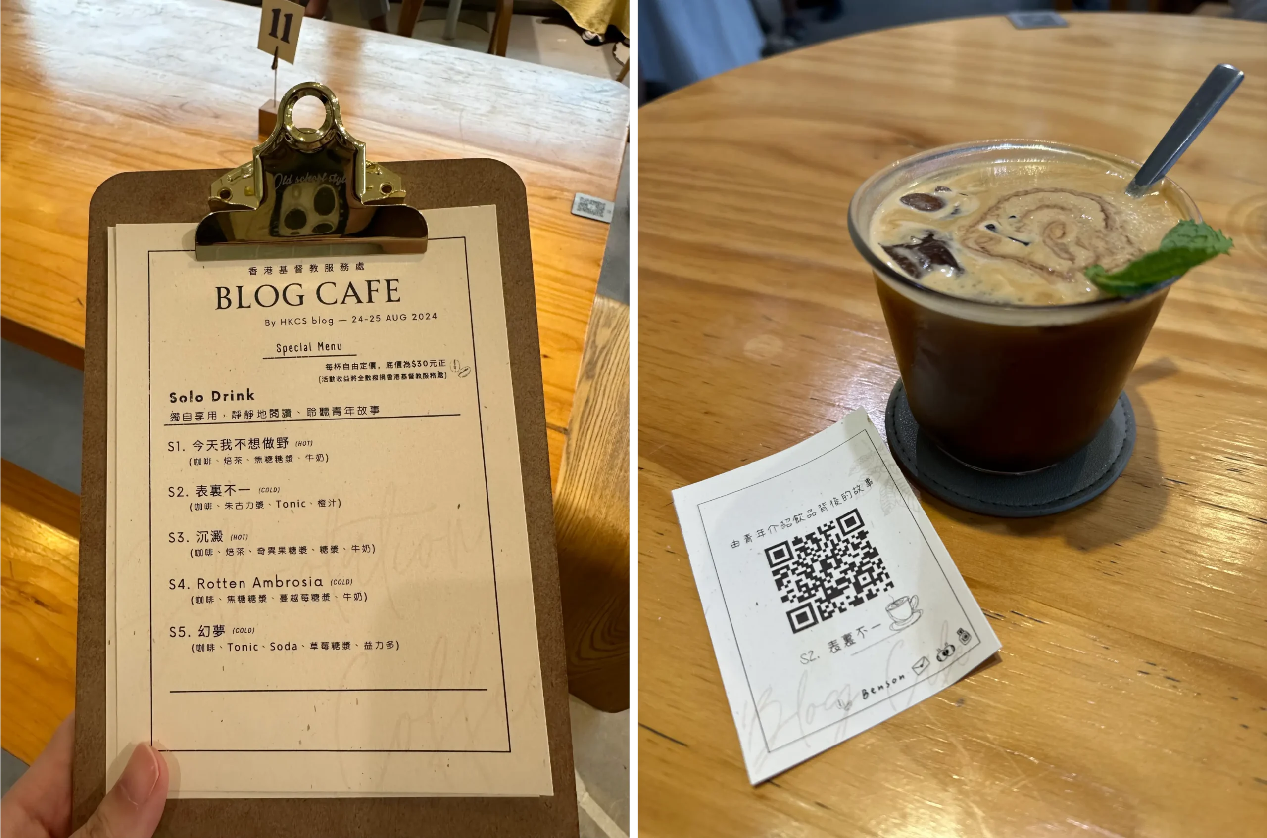 展覽在西環一間Cafe舉行,其中一個環節是讓參觀者點選一杯心水咖啡,創作該咖啡的青年會親自把飲品遞上,之後有deep talk的時間,彼此聆聽交流。