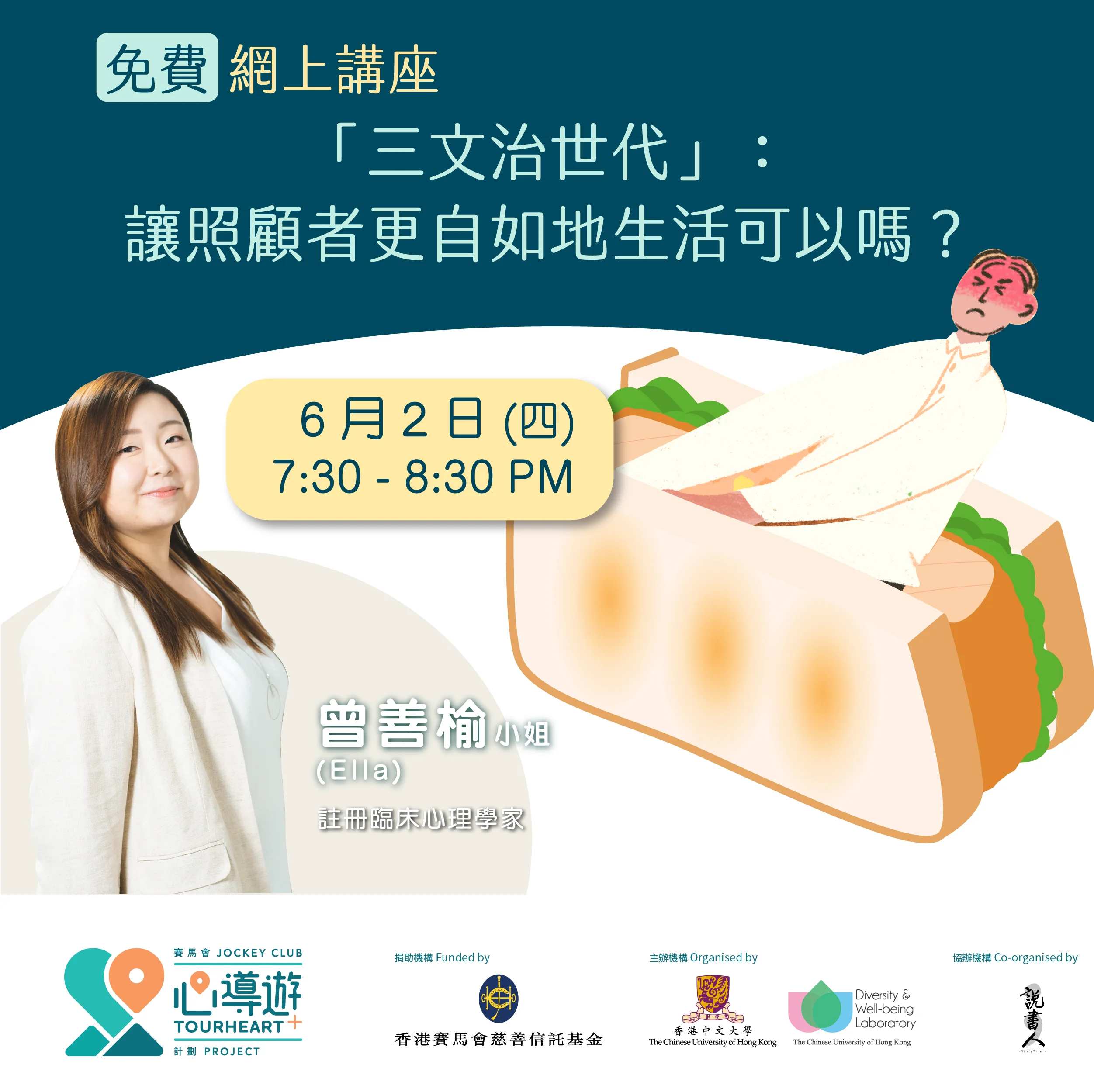 今次講座由臨床心理學家Ella,深入講吓愛家人時,唔等於失去自己;肩負照顧者角色,亦可以設立個人界限,清晰表達自己嘅限制同需要。
