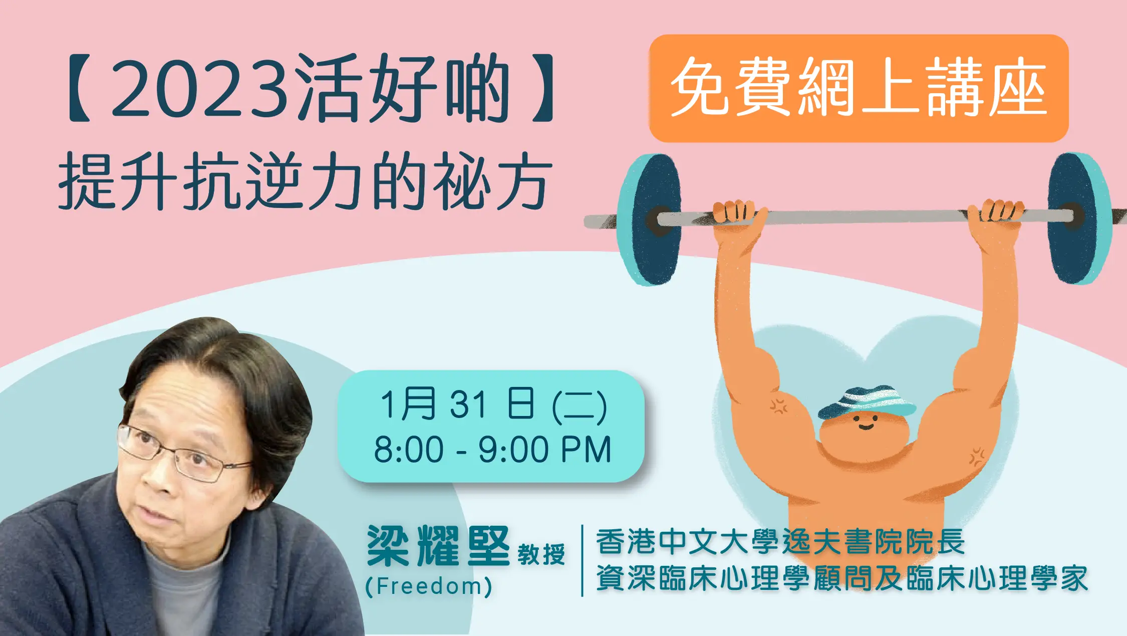 新一年剛開始,我們不妨藉著今次講座,跟資深臨床心理學家梁耀堅教授一起從科學角度,學習調配出提升抗逆力的祕方—— 透過「身心運作S-ABC理論」,了解身心面對壓力時如何作出回應;負責情緒判斷的杏仁核如何作出不同反應,從而影響我們的身心運作,並在心智中拼湊出自己演繹的故事;再從科學角度,帶大家探討日常的好習慣如何為身心帶來重大改變,提升抗逆力。