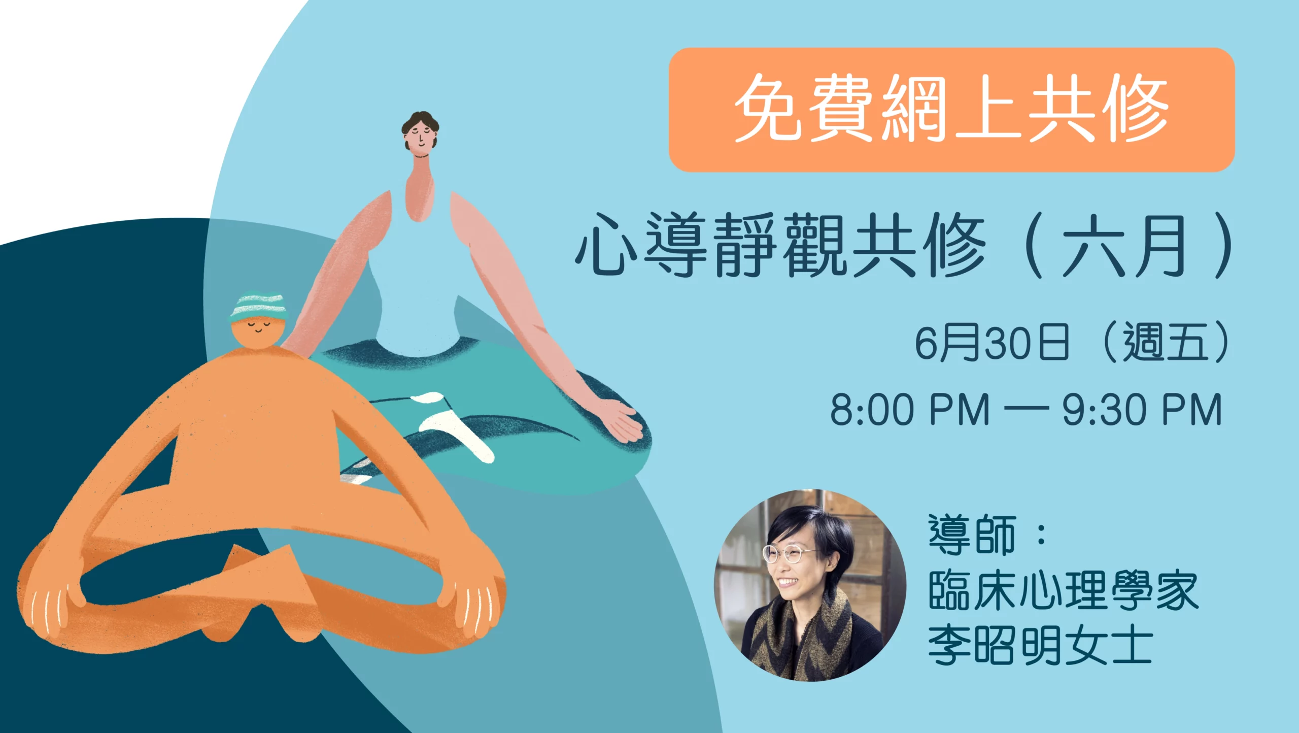 我們每月舉行的心導靜觀共修由臨床心理學家帶領,進行不同形式的靜觀練習 (包括:靜坐、靜觀伸展等),讓有參加我們平台靜觀課程的會員,透過共修和疑難解答,鞏固網上自助學習。我們亦歡迎有持續修習靜觀的朋友,透過共修連繫他人;或任何對靜觀有興趣的人士,來體驗靜觀。