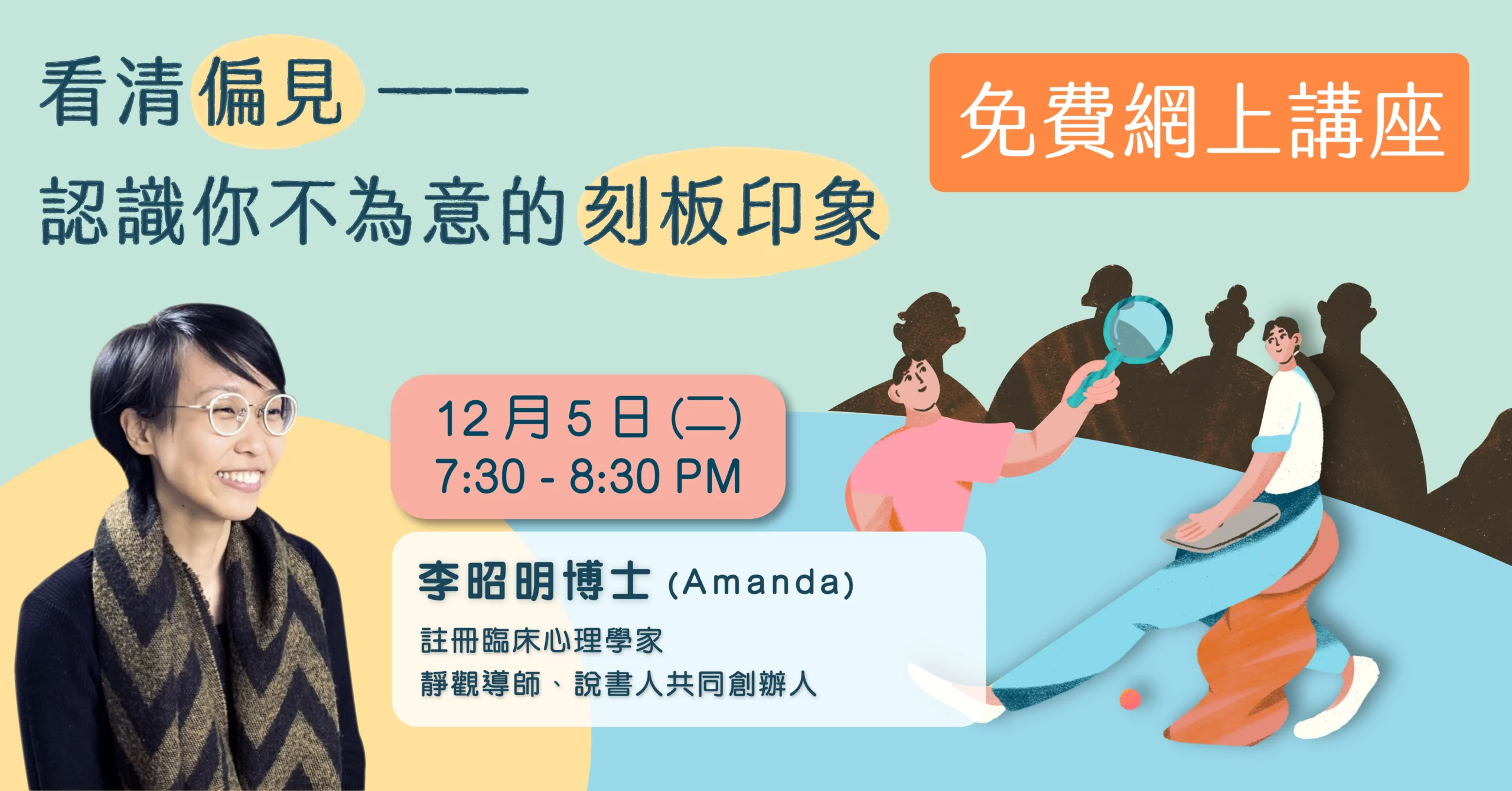 歡迎你透過是次講座,和註冊臨床心理學家Amanda一起從心理學認識刻板印象、偏見;一起誠實地探索自身的刻板印象、偏見,學習如何從中突破。